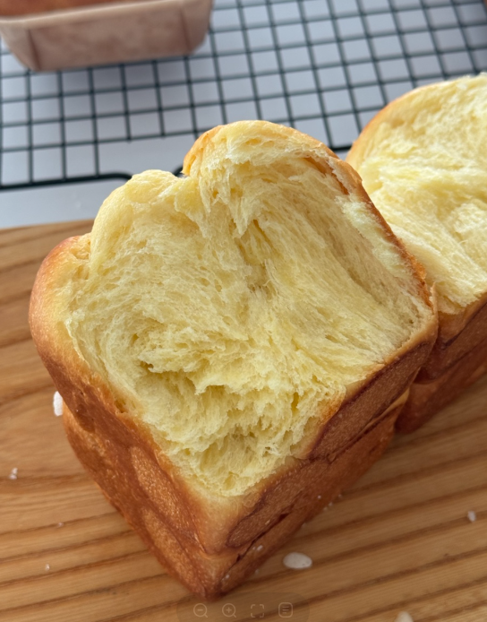 브리오슈식빵은 일반적인 식빵보다 계란과 버터 함량이 높아 결이 매우 부드럽고 촉촉합니다. 한 입 베어 물었을 때 은은하게 퍼지는 달콤한 맛과 진한 버터 향이 특징이며, 겉은 노릇하게 구워져 황금빛을 띠고 속은 폭신합니다.